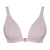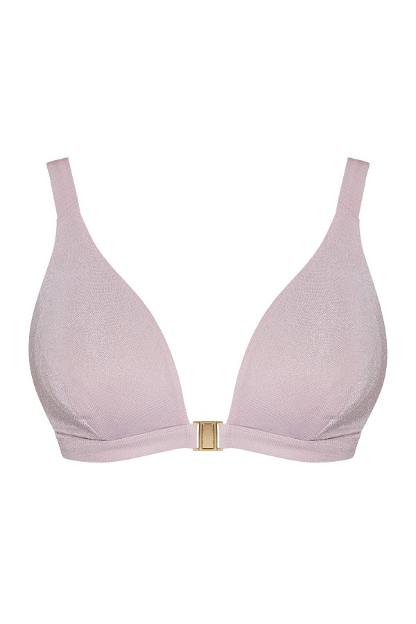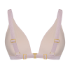 | The Cut Front fastening for extra lift Bespoke band size created by the Summer Club double back slider Adjustable straps Gold hardware Deep bust darts Triple layered support Wider strap to create elegant fluid lines |